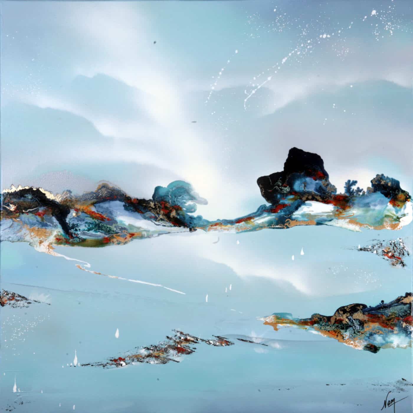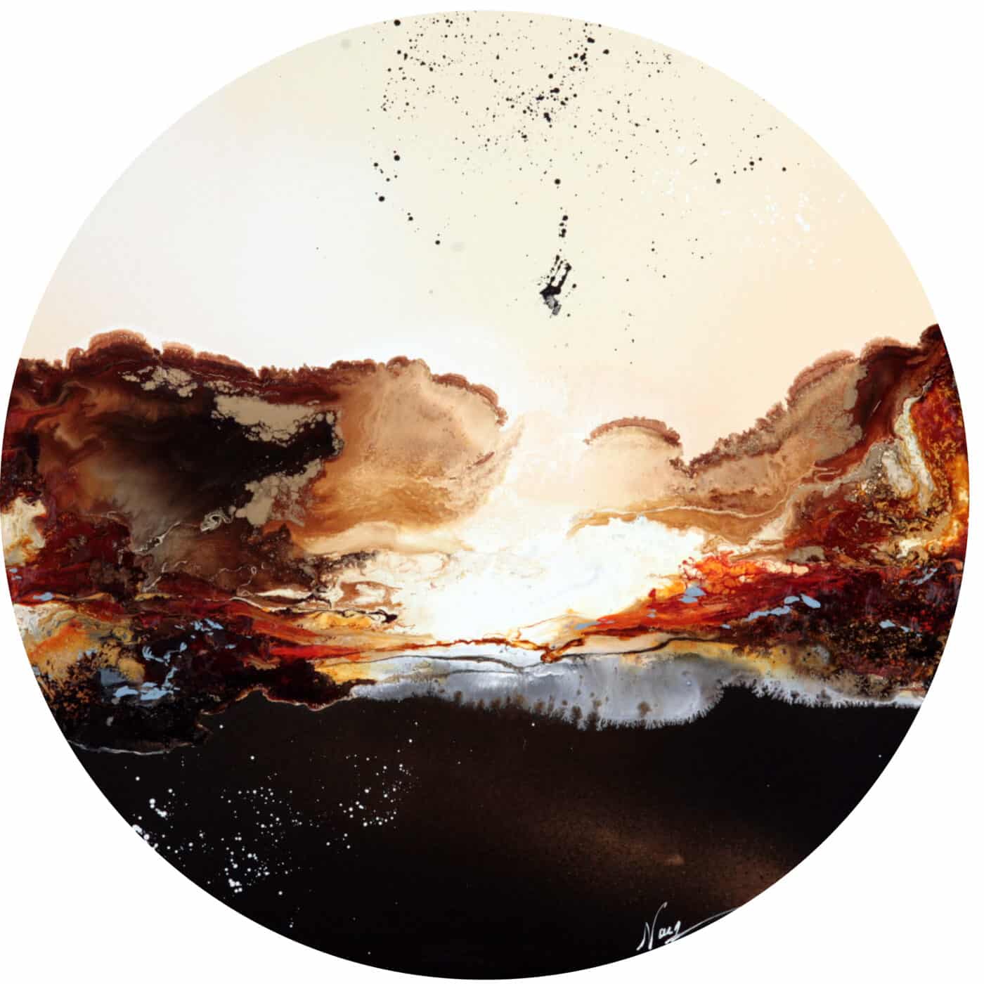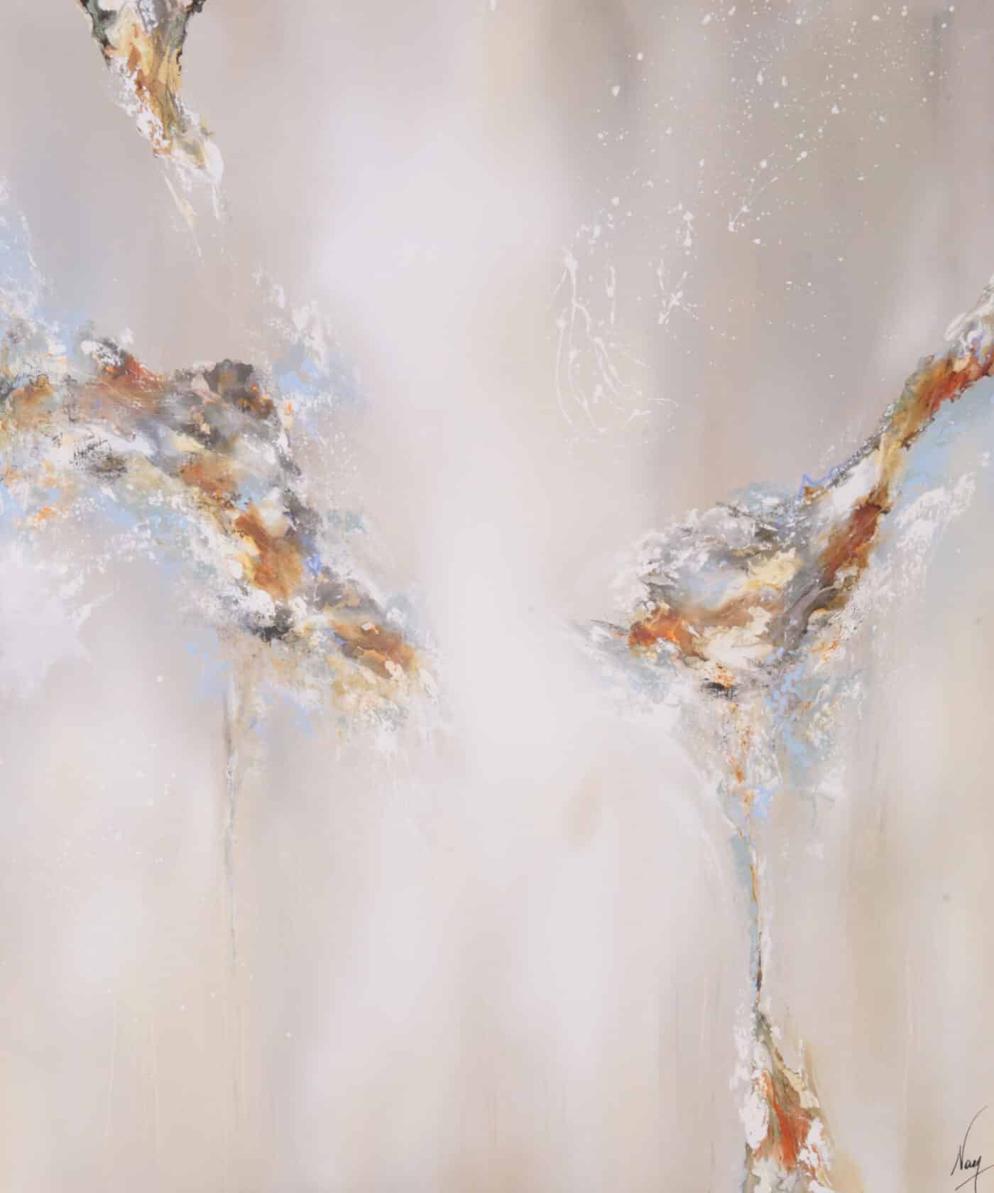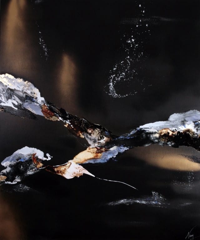 Au fil du temps et de ses recherches, sa peinture et sa technique ont évolué. En plus de la peinture acrylique, Naen utilise en permanence d’autres médiums pour lui permettre de s’exprimer : encres pour leur luminosité, leur fluidité et leur transparence, produits à base de solvants qui interagissent entre eux créant des effets surprenants et harmonieux, pigments bien sûr, pour l’intensité de leurs couleurs, poudre de marbre pour la texture, feuilles d’or, pastels secs… Le champ des possibles est infini au service de sa créativité ! C’est donc de la « technique mixte ».